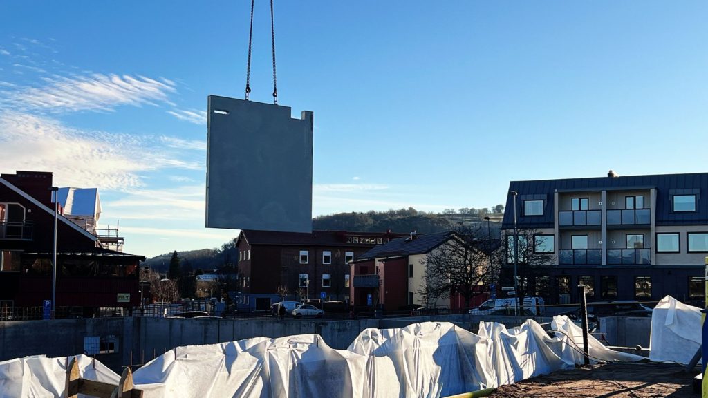 I vår entreprenad ingick leverans samt montage av halvsandwich och homogenväggar, pelare och balk i både betong och stål samt balkonger och loftgångar, plattbärlag och trappor.